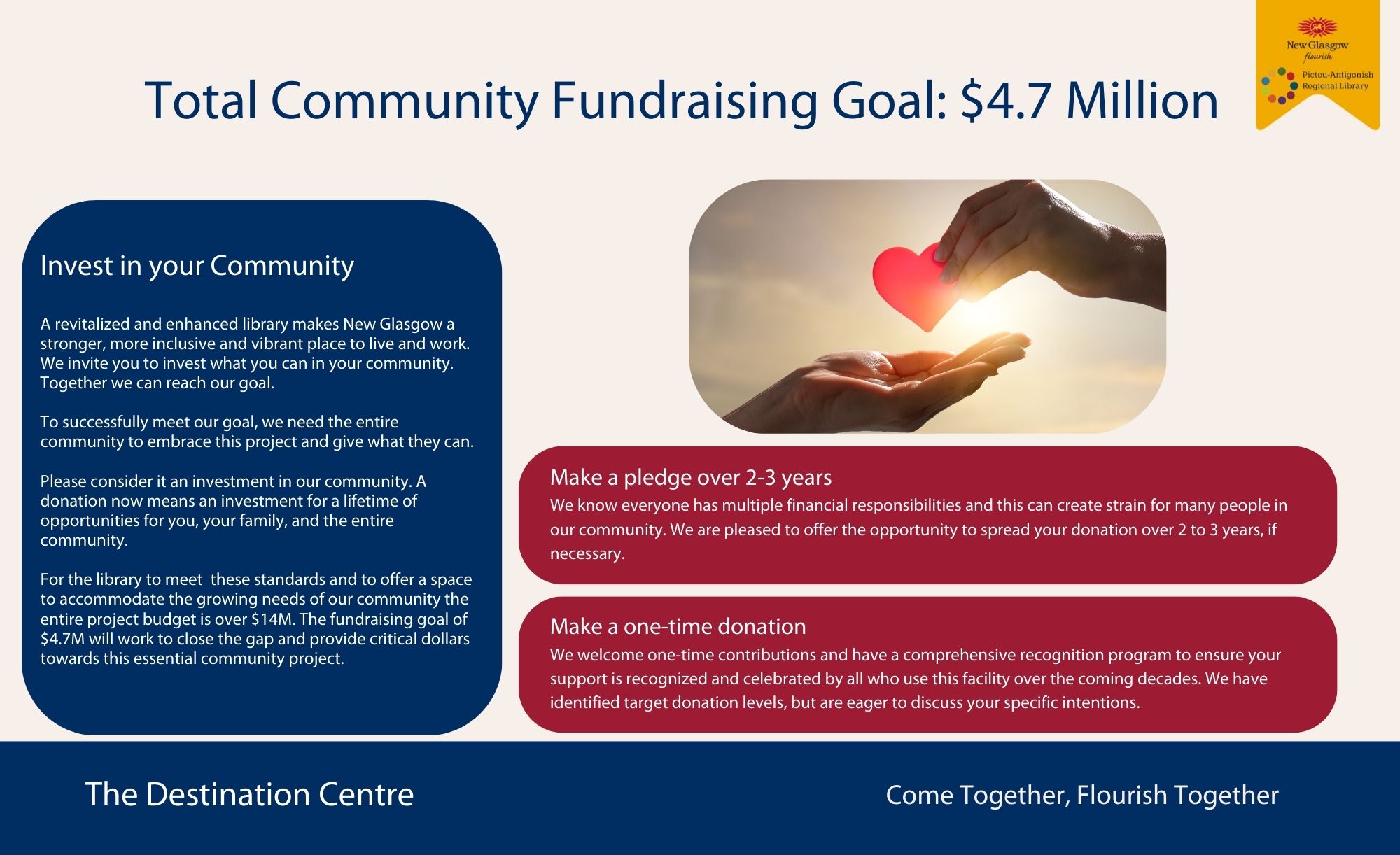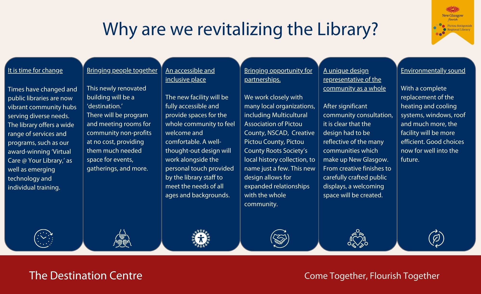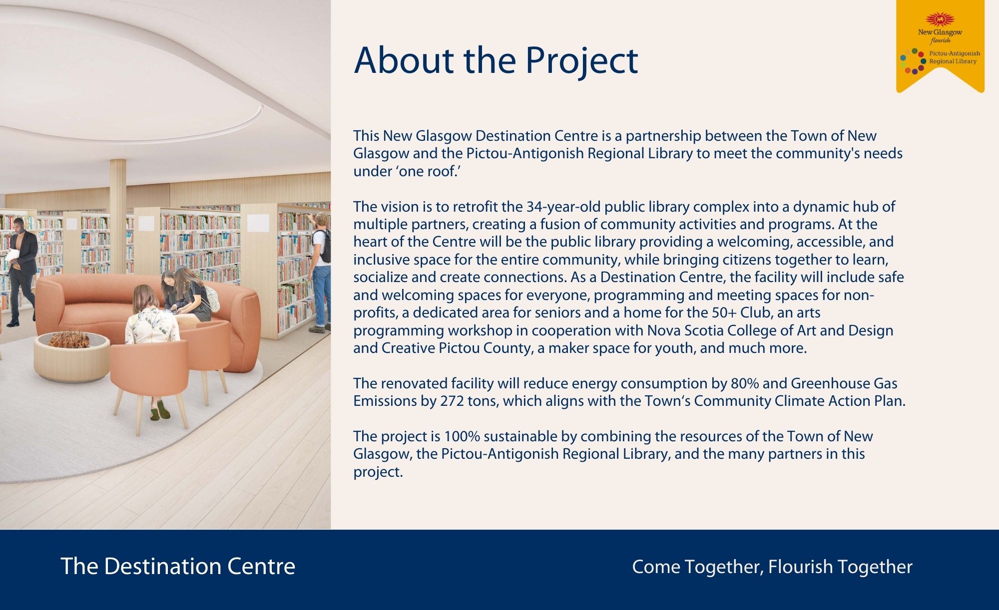 The project will transform the existing library facility into a vibrant Destination Centre, bringing together community partners and providing welcoming, accessible spaces for residents of all ages. Planned upgrades include modern meeting rooms, creative and maker spaces, areas for youth and seniors, and programming and collaboration spaces for community groups and nonprofit organizations.